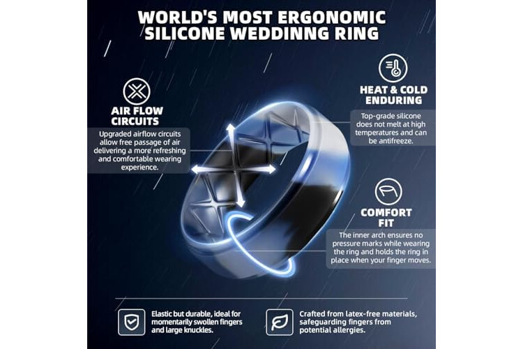 Egnaro Men's Rings 8.5mm Wide-2mm Thick Inner Arc Ergonomic Breathable Rubber Wedding bands-Hypoallergenic for Gym/Outdoor/Gift((1-7 Variety Pack with Half Size)