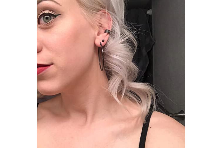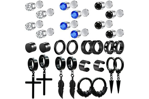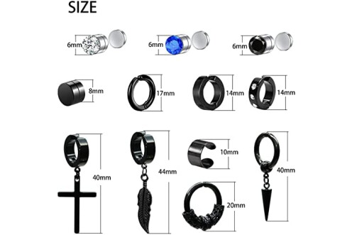Magnetic Earrings - 15 Pairs Clip On, Non-Pierced, Fake Earrings - Black Cross Hoop Dangle for Men & Women