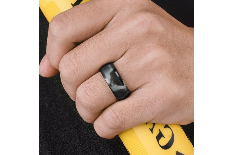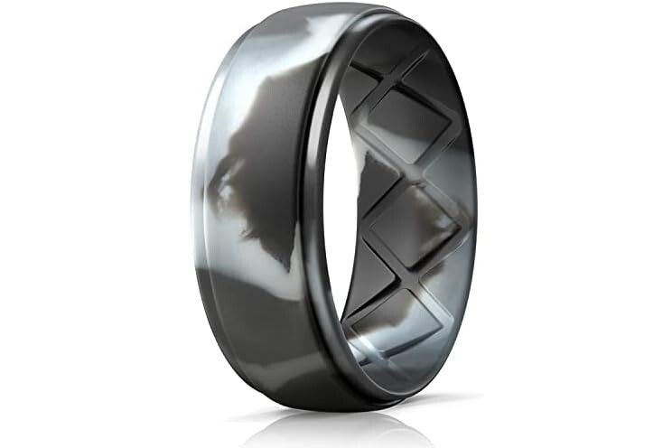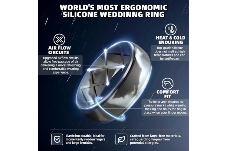 Egnaro Inner Arc Ergonomic Breathable Design, Silicone Rings Mens with Half Sizes, 1/4/5/6/7 Rubber Wedding Bands, 10mm Wide-2.5mm Thick