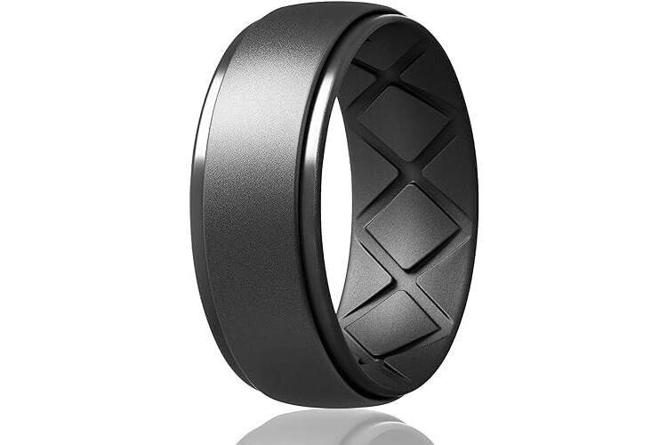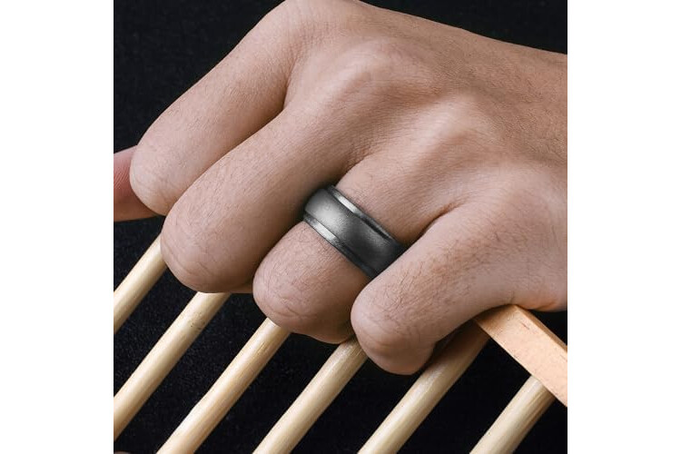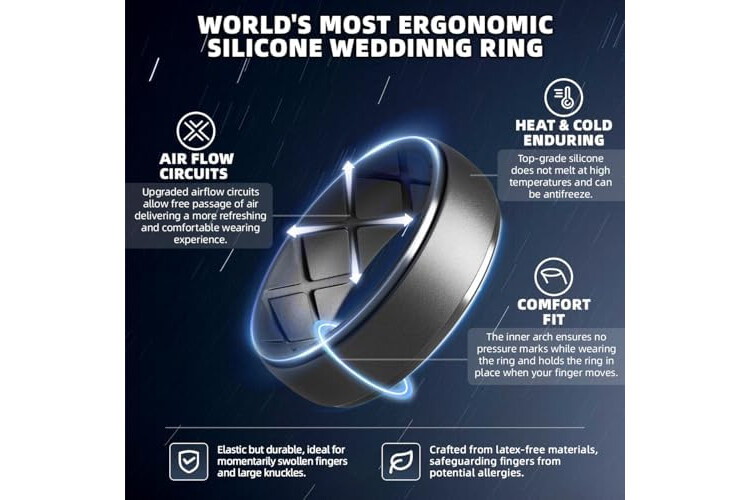 Egnaro Inner Arc Ergonomic Breathable Design, Silicone Rings Mens with Half Sizes, 1/4/5/6/7 Rubber Wedding Bands, 10mm Wide-2.5mm Thick