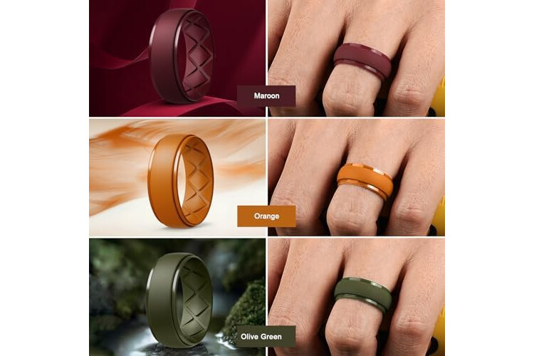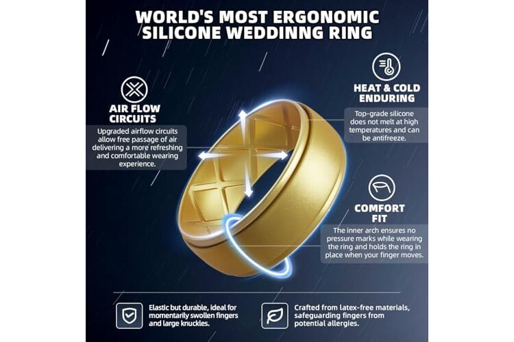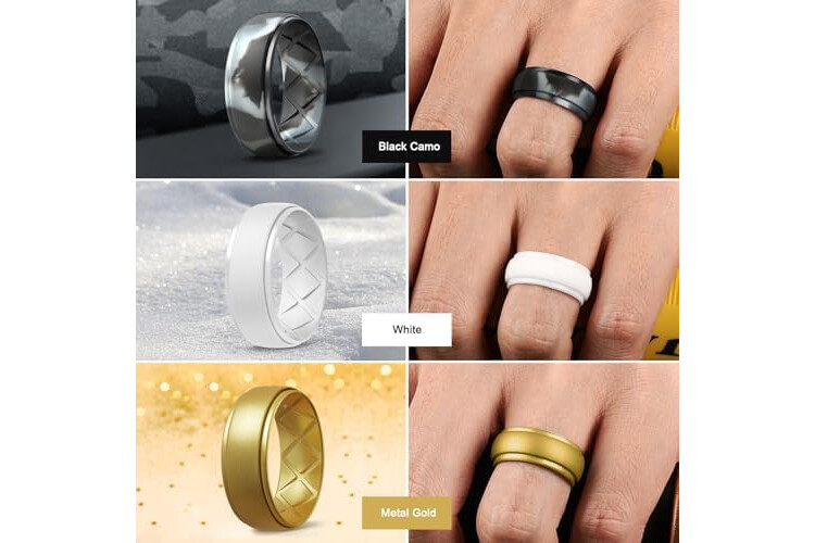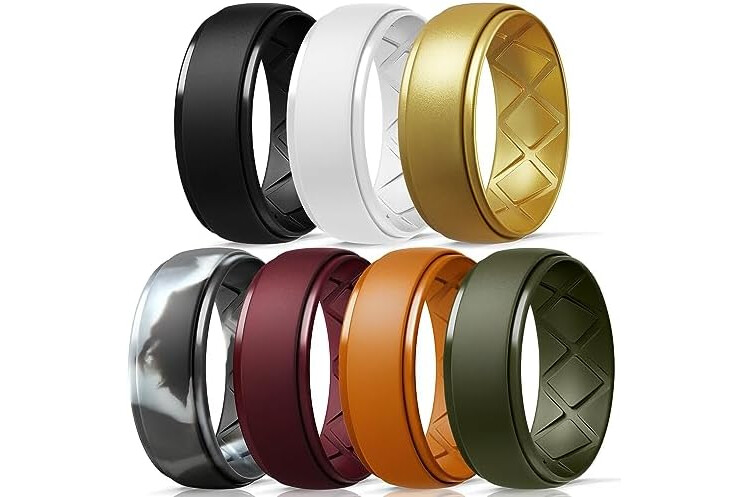 Egnaro Inner Arc Ergonomic Breathable Design, Silicone Rings Mens with Half Sizes, 1/4/5/6/7 Rubber Wedding Bands, 10mm Wide-2.5mm Thick