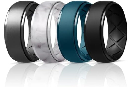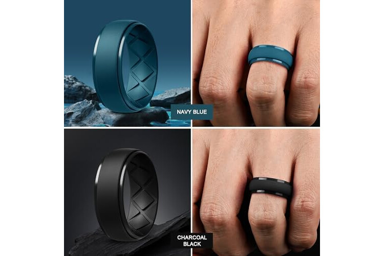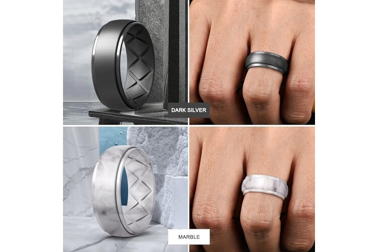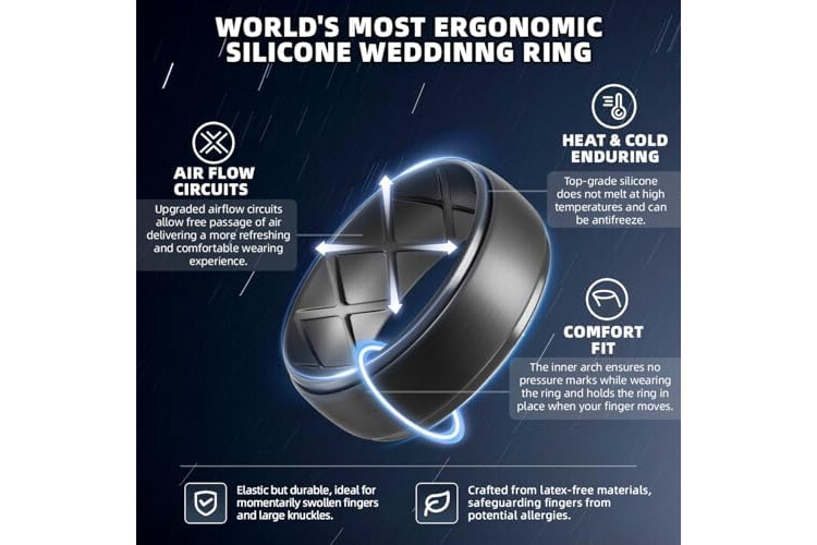 Egnaro Inner Arc Ergonomic Breathable Design, Silicone Rings Mens with Half Sizes, 1/4/5/6/7 Rubber Wedding Bands, 10mm Wide-2.5mm Thick