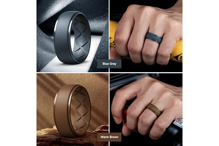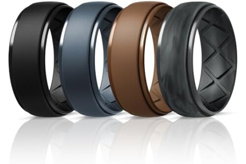 Egnaro Inner Arc Ergonomic Breathable Design, Silicone Rings Mens with Half Sizes, 1/4/5/6/7 Rubber Wedding Bands, 10mm Wide-2.5mm Thick