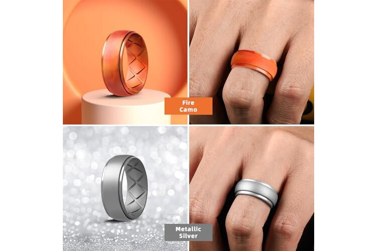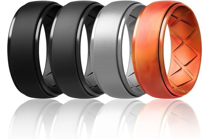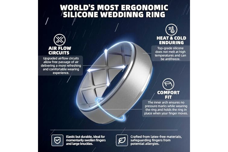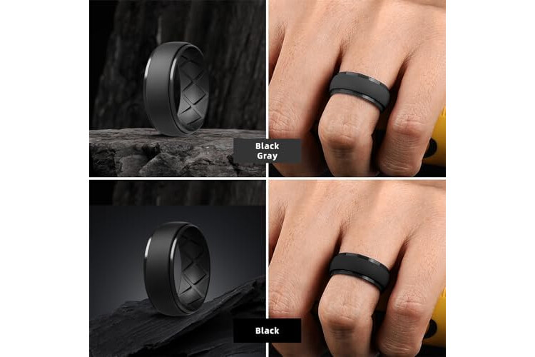 Egnaro Inner Arc Ergonomic Breathable Design, Silicone Rings Mens with Half Sizes, 1/4/5/6/7 Rubber Wedding Bands, 10mm Wide-2.5mm Thick