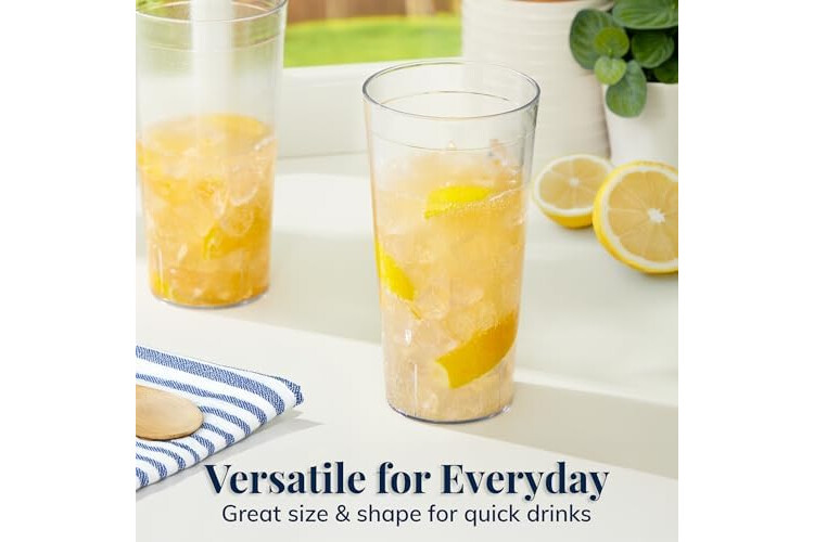 Say goodbye to worries about breakage with our shatter-resistant tumblers, perfect for parties, family gatherings, and outdoor events. This classic style plastic glass set is a great addition to any college dorm room, first apartment, rv, and camper. Consider adding these as a wedding registry gift for a new household.