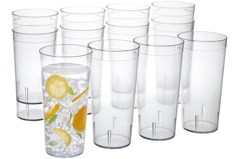 US Acrylic Café Plastic Reusable Tumblers (Set of 12) 32-ounce Iced-Tea Cups Clear | Value Set of Restaurant Style Drinking Glasses, Stackable, BPA-free, Made in the USA | Top-rack Dishwasher Safe