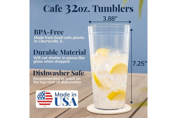 Enjoy everyday drinks with confidence using our American-made stackable tumblers, a set of 12 32-ounce glasses designed for your convenience. Crafted from BPA-free plastic, these cups ensure safety without compromising quality, making them ideal for both indoor and outdoor use.