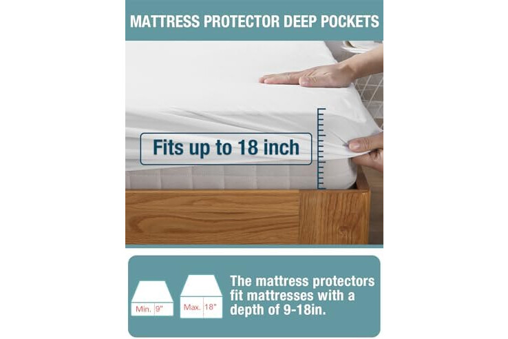 Bedecor Queen Waterproof Mattress Protector,Pee and Liquid Proof Cover for Pets, Elderly, and Incontinence, Fitted Deep Pocket for 9-18 Inch Deep