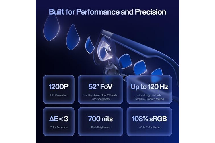 Premium Display Quality – Smooth, Sharp, and True-to-Life: XREAL 1S delivers ultra‑smooth viewing with a 120Hz refresh rate in 3DoF mode and a 90Hz global refresh that eliminates flicker and blur. Every unit is individually color‑tuned for precise, natural hues. The redesigned optical engine boosts clarity by 9%, delivering crisp detail from center to edge. Advanced optical alignment ensures each image point locks perfectly to your eye, keeping visuals sharp, vivid, and lifelike.