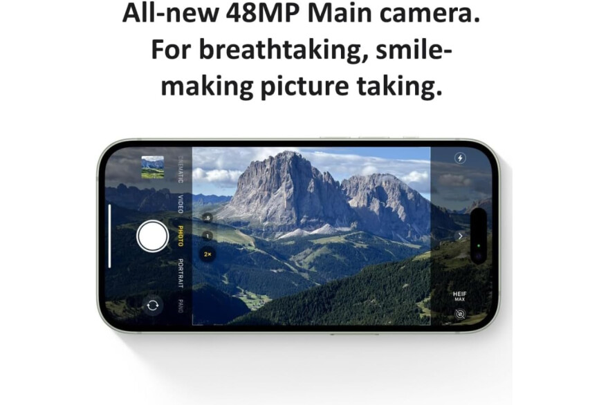 Advanced dual-camera system. 48MP Main | Ultra Wide. Super-high-resolution photos (24MP and 48MP). Next-generation portraits with Focus and Depth Control. 4X optical zoom range