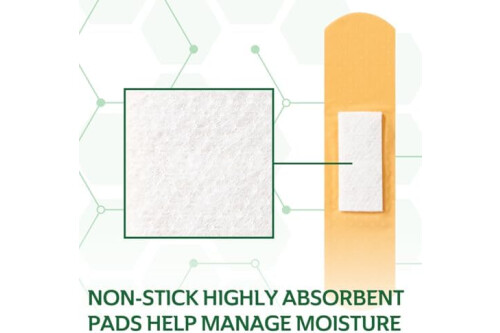 ABSORBENT PADS: Our bandages are equipped with a non-stick pad that is 2X more absorbent when compared to its dry weight, ensuring optimal moisture management.