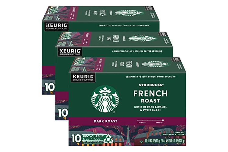 Starbucks Coffee K-Cup Pods, French Roast, Dark Roast Ground Coffee K-Cups for Keurig Brewers, 100% Arabica Coffee, 10 CT K-Cup Pods/Box (Pack of 3 Boxes)