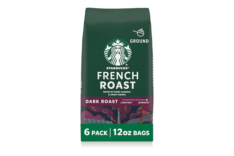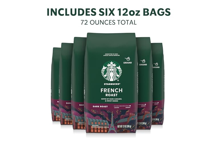 PREMIUM GROUND COFFEE: Enjoy the Starbucks coffee you love at home with six 12-ounce bags of Starbucks French Roast dark roast ground coffee