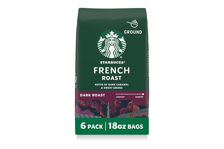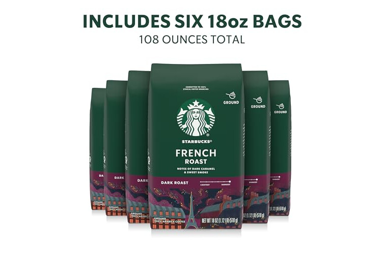 PREMIUM GROUND COFFEE: Enjoy the Starbucks coffee you love at home with six 18-ounce bags of Starbucks French Roast dark roast ground coffee