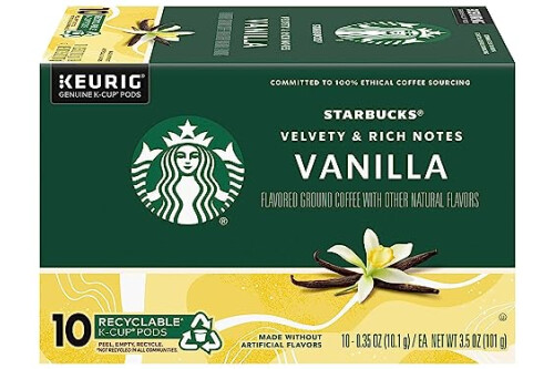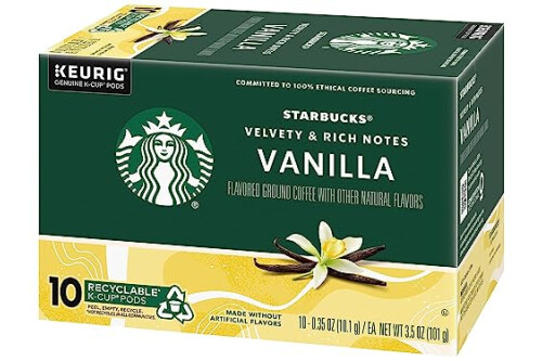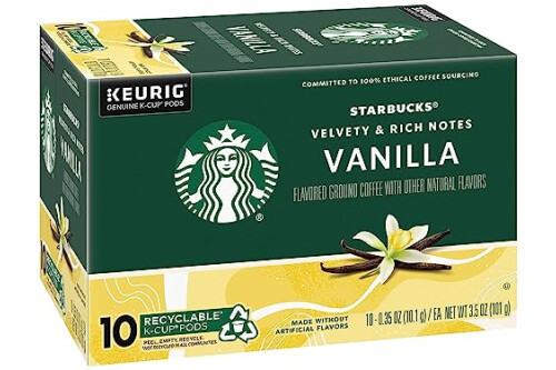 Starbucks Flavored Coffee K-Cup Pods, Vanilla Flavored Coffee, Made without Artificial Flavors, Keurig Genuine K-Cup Pods, 10 CT K-Cups/Box (Pack of 4 Boxes)