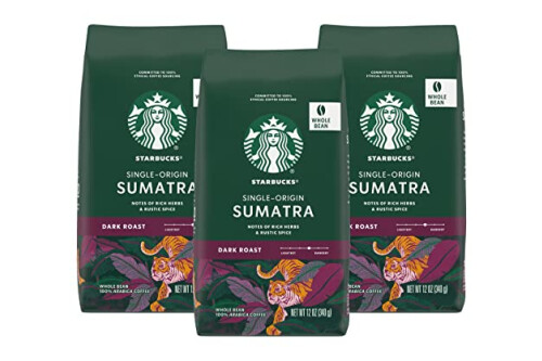 Starbucks Sumatra Coffee, Whole Bean, 12-Ounce Bags (Pack of 3)