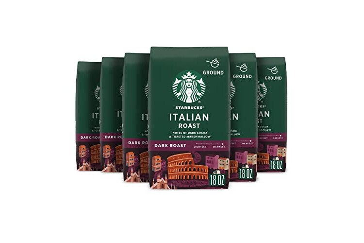 PREMIUM GROUND COFFEE: Enjoy the Starbucks coffee you love at home with six 18-ounce bags of Starbucks Italian Roast dark roast ground coffee