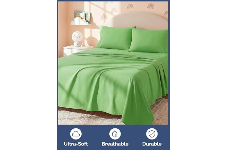 GREEN QUEEN SIZE BED SHEET SET FOR KIDS: CGK kids sheets make it easy to refresh your child’s room with cheerful, bold solid shades. Your little one gets a fun color they’ll love, and you get a clean, classic look that matches anything.