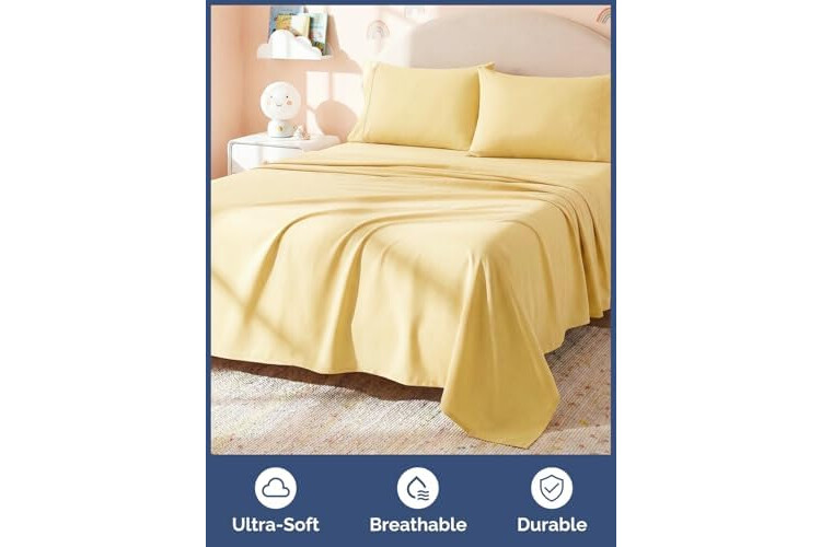 YELLOW QUEEN SIZE BED SHEET SET FOR KIDS: CGK kids sheets make it easy to refresh your child’s room with cheerful, bold solid shades. Your little one gets a fun color they’ll love, and you get a clean, classic look that matches anything.