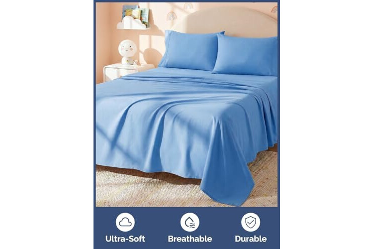 BLUE QUEEN SIZE BED SHEET SET FOR KIDS: CGK kids sheets make it easy to refresh your child’s room with cheerful, bold solid shades. Your little one gets a fun color they’ll love, and you get a clean, classic look that matches anything.