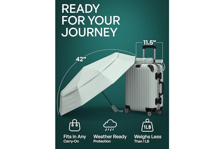 REPEL Windproof Travel Umbrella - Compact & Withstands Winds up to 85MPH , Strongest Premium Auto Folding Umbrella for Rain and Sun - Durable, Light & Portable for Women & Men , Fits Backpack & Cars