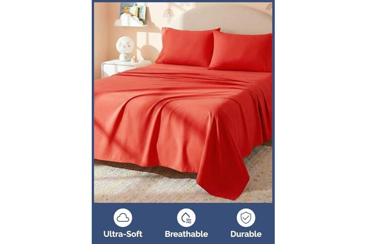 RED FULL SIZE BED SHEET SET FOR KIDS: CGK kids sheets make it easy to refresh your child’s room with cheerful, bold solid shades. Your little one gets a fun color they’ll love, and you get a clean, classic look that matches anything.