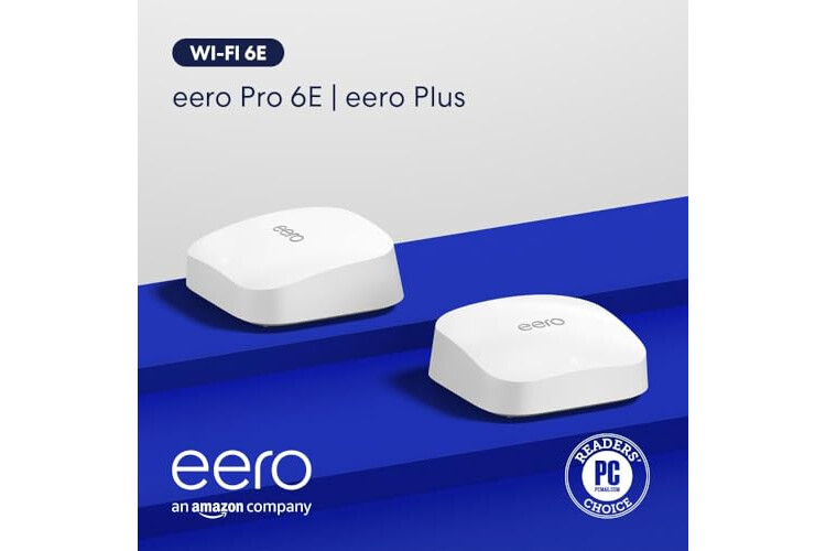 Amazon eero Pro 6E mesh wifi system with 1 month free eero Plus (auto-renews) - Coverage up to 4,000 sq. ft., Connect 100+ devices, 2-pack