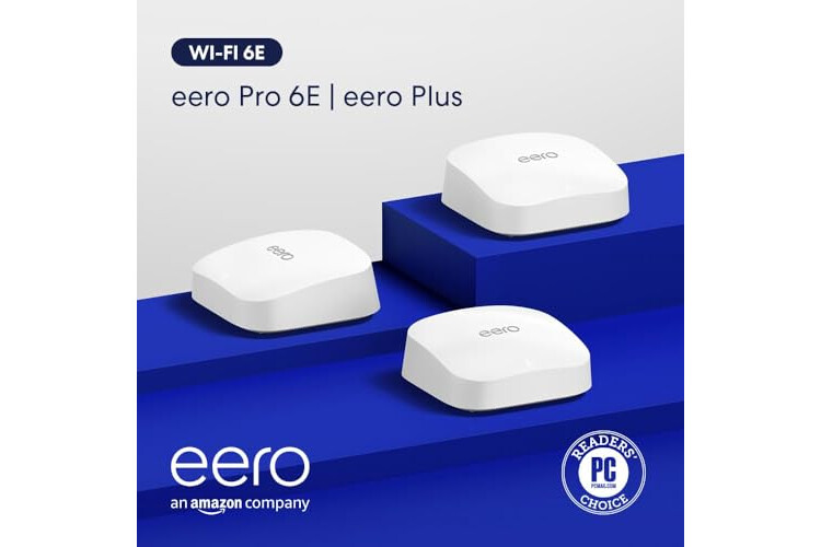 Amazon eero Pro 6E mesh wifi system with eero Plus annual subscription (auto-renews) - Coverage up to 6,000 sq. ft., Connect 100+ devices, 3-pack