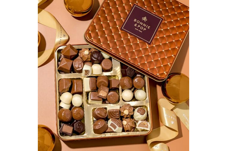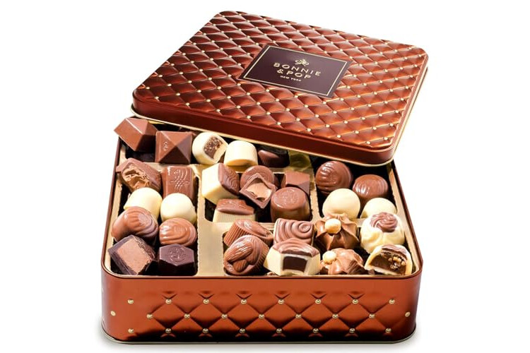 Chocolate Gift Basket– Holiday Candy Gift Box with Assorted Milk, Dark & White Chocolate Truffles – Food Present Idea for Men, Women, Corporate, Get Well, Sympathy, Birthday- Bonnie & Pop