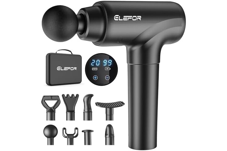 Elefor Massage Gun Deep Tissue,Percussion Back Massager Gun for Athletes Muscle Massage Gun for Pain Relief with 8 Massage Heads & 20 Speeds (Matte Black)