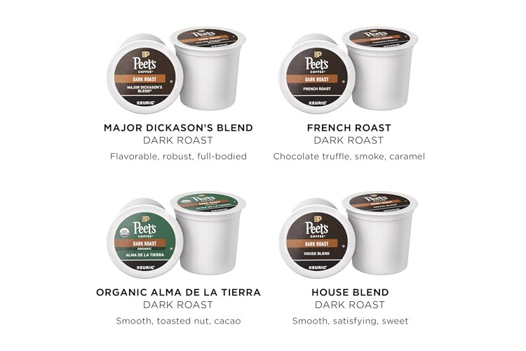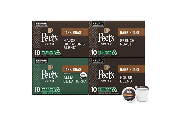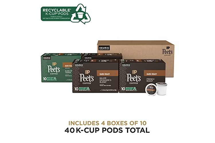 Peet's Coffee, Keurig K-Cup Pods Dark Roast Variety Pack, 100% Arabica Coffee - Major Dickason's Blend, French Roast, Organic Alma De La Tierra, House Blend, 40 Count (4 Boxes of 10 K-Cup Pods)