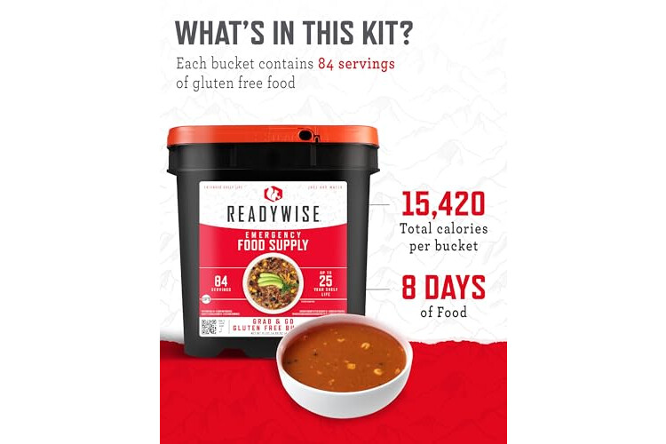 ReadyWise Emergency Food Supply - 84 Servings Gluten Free Survival Food Bucket, Dehydrated Meals & Freeze Dried Food for Backpacking, Camping Essentials & Emergency Supplies, up to 25 Year Shelf Life
