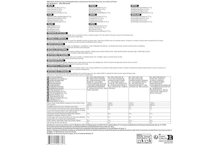 SURVIVAL ESSENTIAL: With 120 servings of Freeze Dried Vegetables, ReadyWise Emergency Bucket is the perfect starting point for anyone serious about preparing for the future. Stay ready for anything, from power outages to outdoor adventures!