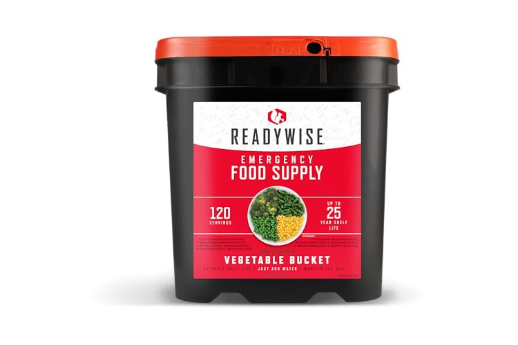ReadyWise Emergency Food Supply - 120 Servings Freeze Dried Vegetables Bucket, Dehydrated Meals, Survival Food Kit for Backpacking, Camping Essentials & Prepping Supplies, up to 25 Year Shelf Life