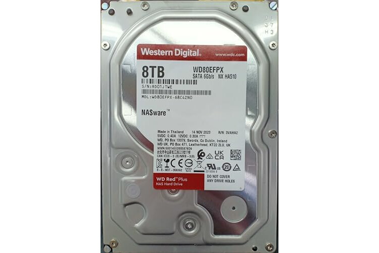 Western Digital 8TB WD Red Plus NAS Internal Hard Drive HDD - 5640 RPM, SATA 6 Gb/s, CMR, 256 MB Cache, 3.5" - WD80EFPX