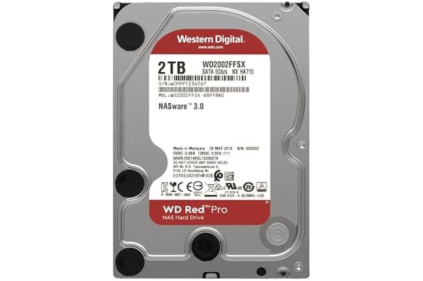 Western Digital 2TB WD Red Pro NAS Internal Hard Drive HDD - 7200 RPM, SATA 6 Gb/s, CMR, 64 MB Cache, 3.5" - WD2002FFSX