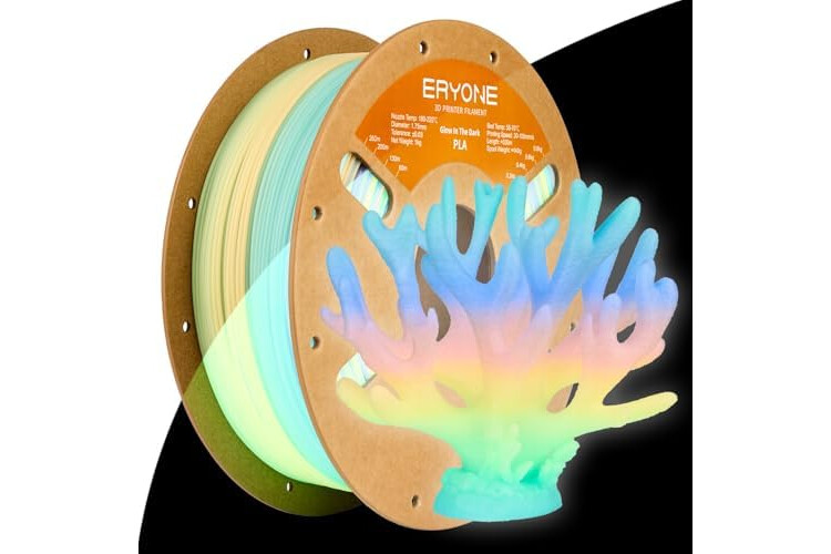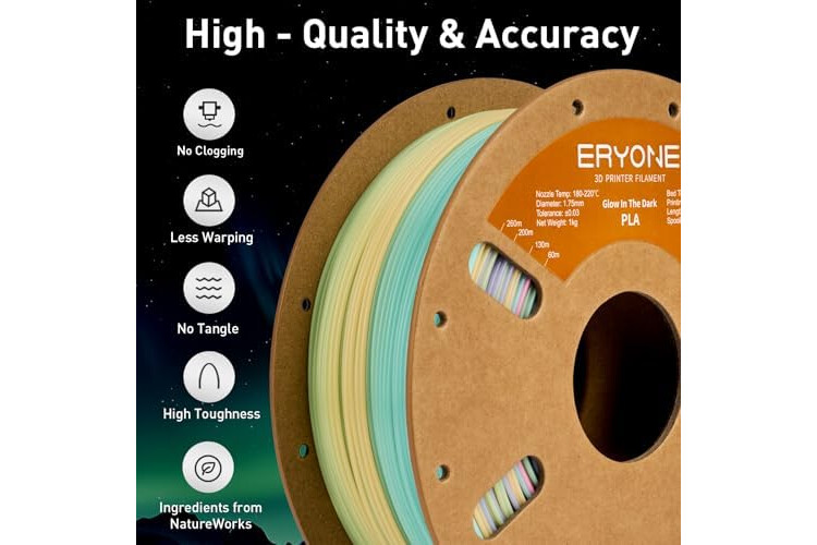 【Glow in the Dark Rainbow】ERYONE glow in the dark filament produces a unique rainbow light effect, transitioning through pink, yellow, blue, green, and purple every 5-8 meters. Using more than 8m of this filament reveals a full rainbow filament spectrum, make your 3D prints creations stand out with eye-catching colors.
