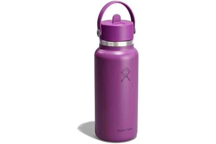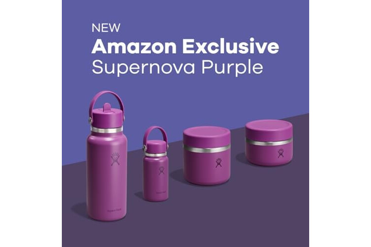 32 OZ SUPERNOVA PURPLE BOTTLE: Flip it and sip it with the Hydro Flask Wide Mouth insulated water bottle with closeable straw cap. With a comfortable, flexible handle, the leakproof straw cap is easy to open and close. Double-wall insulation keeps drinks cold up to 24 hours.
