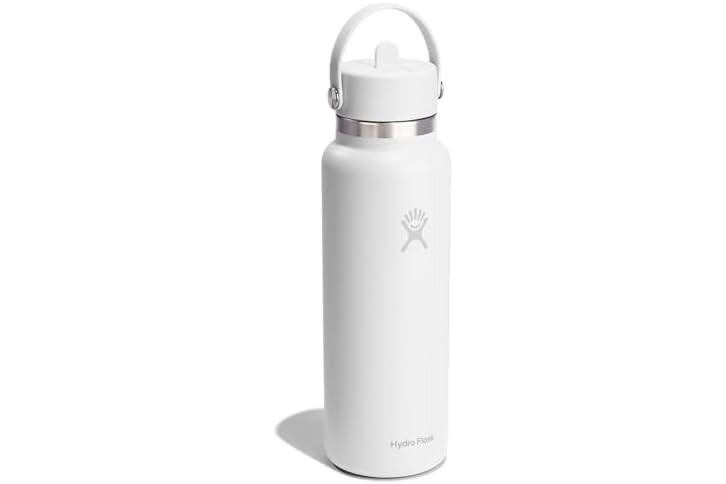 40 OZ TONAL WHITE BOTTLE: Flip it and sip it with the Hydro Flask Wide Mouth insulated water bottle with closeable straw cap. With a comfortable, flexible handle, the leakproof straw cap is easy to open and close, for on-demand hydration. Double-wall insulation keeps drinks cold up to 24 hours.