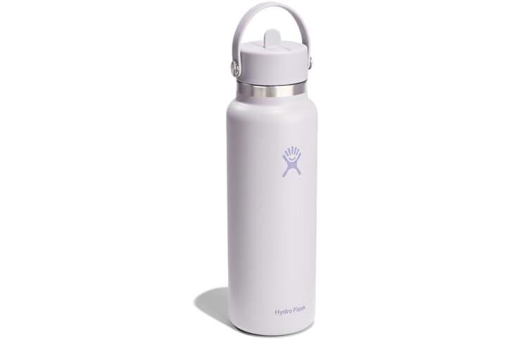 40 OZ CLOUD PINK BOTTLE: Flip it and sip it with the Hydro Flask Wide Mouth insulated water bottle with closeable straw cap. With a comfortable, flexible handle, the leakproof straw cap is easy to open and close, for on-demand hydration. Double-wall insulation keeps drinks cold up to 24 hours.
