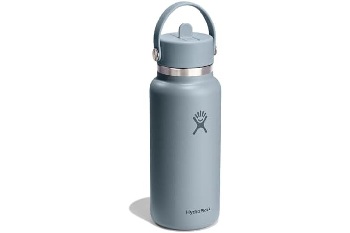 32 OZ SHALE GRAY BOTTLE: Flip it and sip it with the Hydro Flask Wide Mouth insulated water bottle with closeable straw cap. With a comfortable, flexible handle, the leakproof straw cap is easy to open and close. Double-wall insulation keeps drinks cold up to 24 hours.