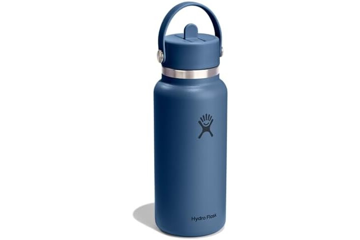 32 OZ HARBOR BLUE BOTTLE: Flip it and sip it with the Hydro Flask Wide Mouth insulated water bottle with closeable straw cap. With a comfortable, flexible handle, the leakproof straw cap is easy to open and close. Double-wall insulation keeps drinks cold up to 24 hours.