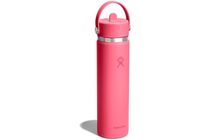 24 OZ POPSTAR PINK BOTTLE: Flip it and sip it with the Hydro Flask Wide Mouth insulated water bottle with closeable straw cap. With a comfortable, flexible handle, the leakproof straw cap is easy to open and close with one hand. Double-wall insulation keeps drinks cold up to 24 hours.
