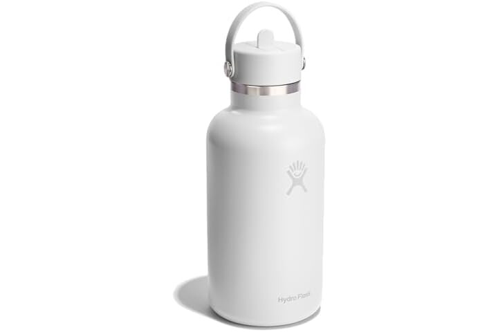 64 OZ TONAL WHITE BOTTLE: Flip it and sip it with the Hydro Flask Wide Mouth insulated water bottle with closeable straw cap. With a comfortable, flexible handle, the leakproof straw cap is easy to open and close, for on-demand hydration. Double-wall insulation keeps drinks cold up to 24 hours.