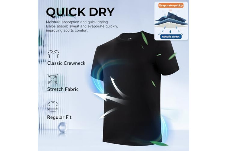 BAMBOO COOL Men's Undershirts for Men Pack,Moisture-Wicking Tees,Stretch Crew Neck Soft T-Shirts