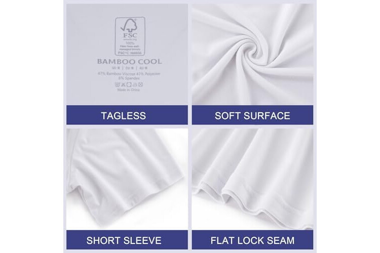 BAMBOO COOL Men's Undershirts for Men Pack,Moisture-Wicking Tees,Stretch Crew Neck Soft T-Shirts