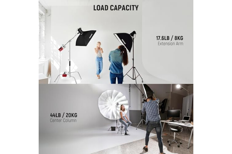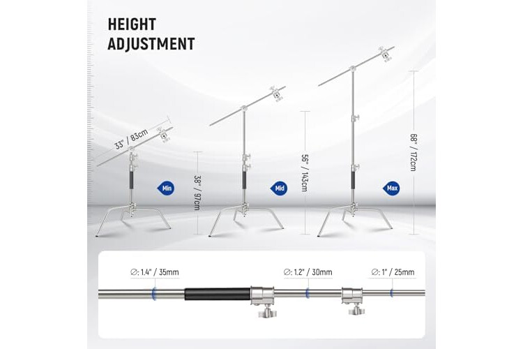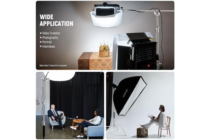 【Heavy Duty 100% Stainless Steel C Stand】 Solidly engineered with sturdy stainless steel, this durable NEEWER C stand with boom arm is a heavy duty mounting solution for studio monolights, LED video lights, softboxes, reflectors, photography umbrellas, and other equipment