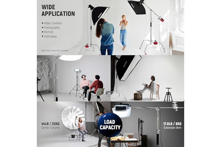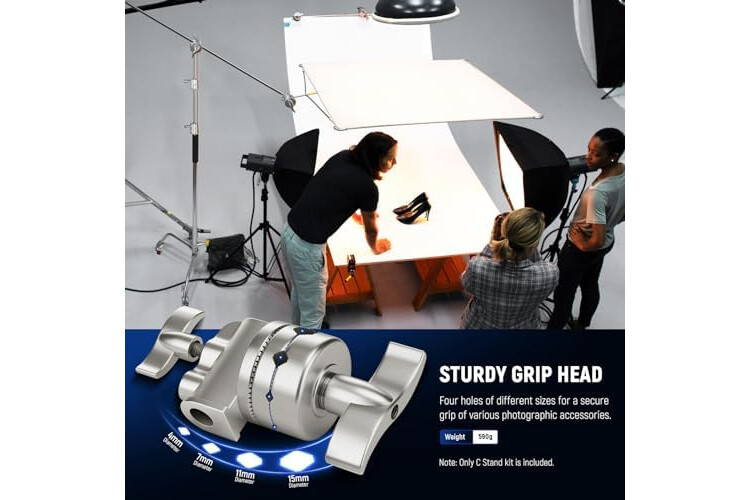 【Multiple Use】 This professional C stand is ideal for mounting CB60 RGB 70W/RGB1200 LED video lights, strobe lights, reflectors, umbrellas, SF30120Q/SF-RPBO26 softboxes, and other photographic equipment. This photography stand maximizes the flexibility of use with its 4.2ft (128cm) grip arm with two standard grip heads, allowing you to position equipment in far more angles and ways. Designed for use inside a studio and collapsible for transport to be used on location