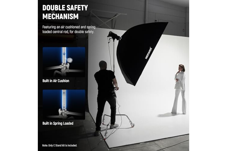 【Double Safety Mechanism】 Featuring an air cushioned and spring loaded central rod, this photography C stand prevents heavy equipment (such as a strobe light) from dropping quickly when collapsing or lowering the stand, and reduces the likelihood of damage to you or your equipment for double safety