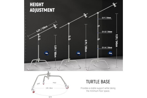Neewer Heavy Duty Light Stand, Metal 11.15ft/3.4m Adjustable Photography Tripod C Stand with Boom Arm Built in Spring Cushion 1/4" Screw for Studio LED Light, DSLR Camera, Max Load: 22lb/10kg, Black